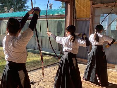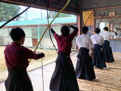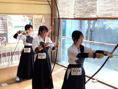 ほとんどの部員が、桐商入学後に弓道を始めました。