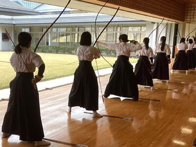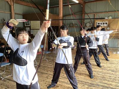 ほとんどの部員が、桐商入学後に弓道を始めました。