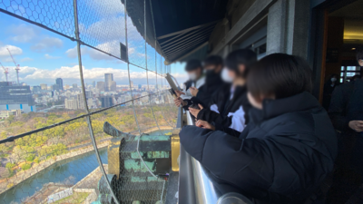 生徒は天守閣の8階分の階段を昇り、大変暑そうにしていましたが、そこから見える素晴らしい大阪の景色を楽しんでいました。
