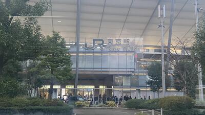 修学旅行団は東京駅を出発し、バス6台で本校へ向かっています。