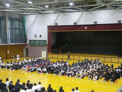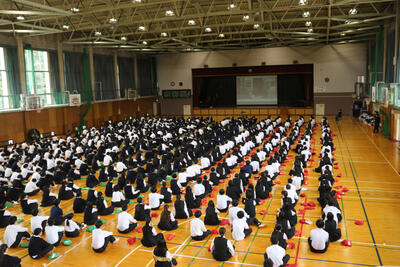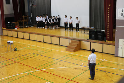 5月23日(金)、関東大会壮行会、生徒総会、交通安全教室が実施されました。関東大会壮行会では、男子バドミントン部、女子バドミントン部、弓道部、陸上競技部、体操競技の各選手が、関東大会への出場権を獲得したことを受け、校長および生徒会長より激励の言葉が贈られました。出場選手たちの健闘を、全校で心から応援しています。