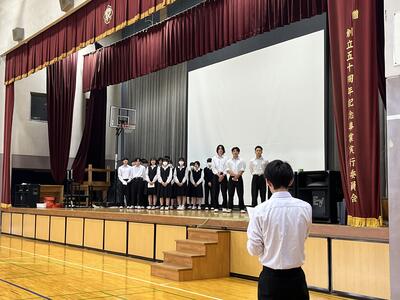 4月25日(金)に、開校記念式典と記念講演を行いました。開校記念式典には、同窓会やPTAの方々に参加していただきました。