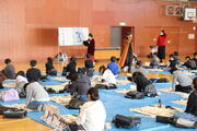 途中の体験コーナーでは、実際にエイサーの振り付けを教えていただき、生徒たちは真剣な表情で取り組んでいました。太鼓のリズムに合わせて身体を動かす楽しさと、地域の文化の奥深さを同時に味わうことができたようです。
