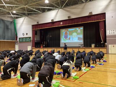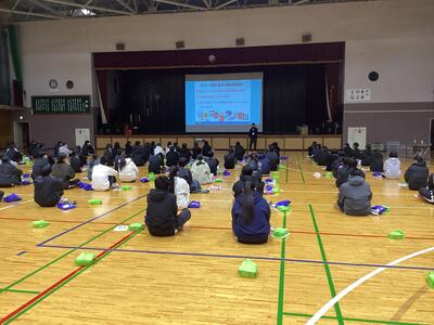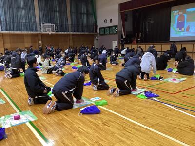 1月27日(火)、28日(水)に行われた1学年の行事では、1学年6クラスのうち3クラスがスキー教室に参加し、残りの3クラスは校内で救急救命講習と防災ワークショップを実施しました。