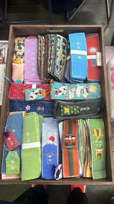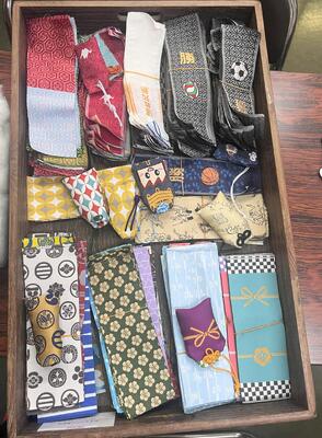 夏休み期間を利用して、お守り作り体験に参加してみました。お守り作りは、自分の好きな布や糸を選ぶことからスタートします。和柄やチェック柄、メガネ柄などたくさんの布があって選ぶだけでも楽しかったです。なかには、野球やバスケなど球都桐生ならではの布もあり「必勝」守りも素敵でした。柄や織り方の豊富さに桐生織の魅力を改めて実感しました。