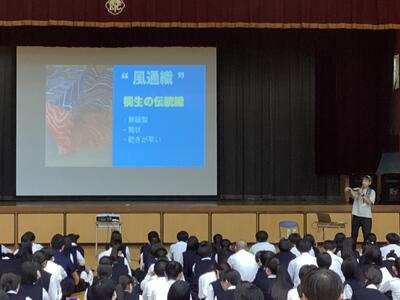 この講話を通して、桐生の地場産業を生かした製品づくりやビジネスの面白さや難しさ、その魅力について学び、日々学習している商業の知識が将来ビジネスの世界でどのように役立つのかを知る貴重な講話となりました。