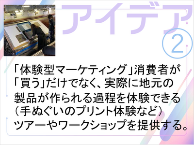 ・地場産品に関連した染色体験や木工体験、料理教室などワークショップの実施